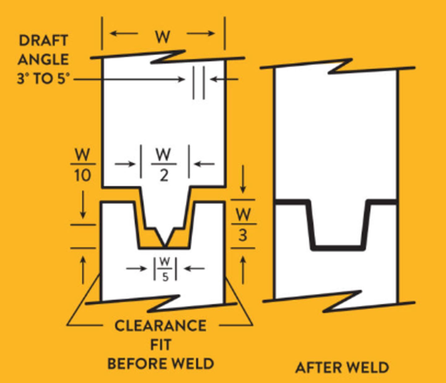 沟槽缝规划,上下件可自定位,具有高强度、密封性好的特色,且内外侧无溢料。缺点是要求必定的壁厚。